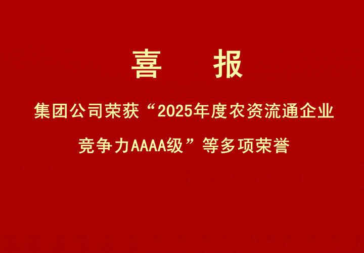 喜報(bào)|集團(tuán)公司榮獲“2025年度農(nóng)資流通企業(yè)競爭力AAAA級(jí)”等多項(xiàng)榮譽(yù)